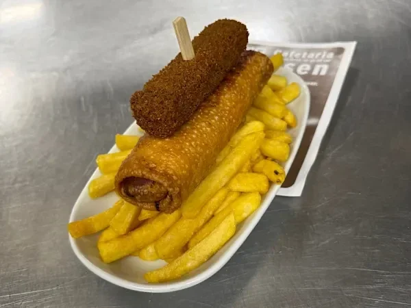 De Mini Hovercraft bestaat uit een rijk gevulde Kip Loempia van 200 gram, een Vleeskroket van 80 gram en een medium portie verse friet.